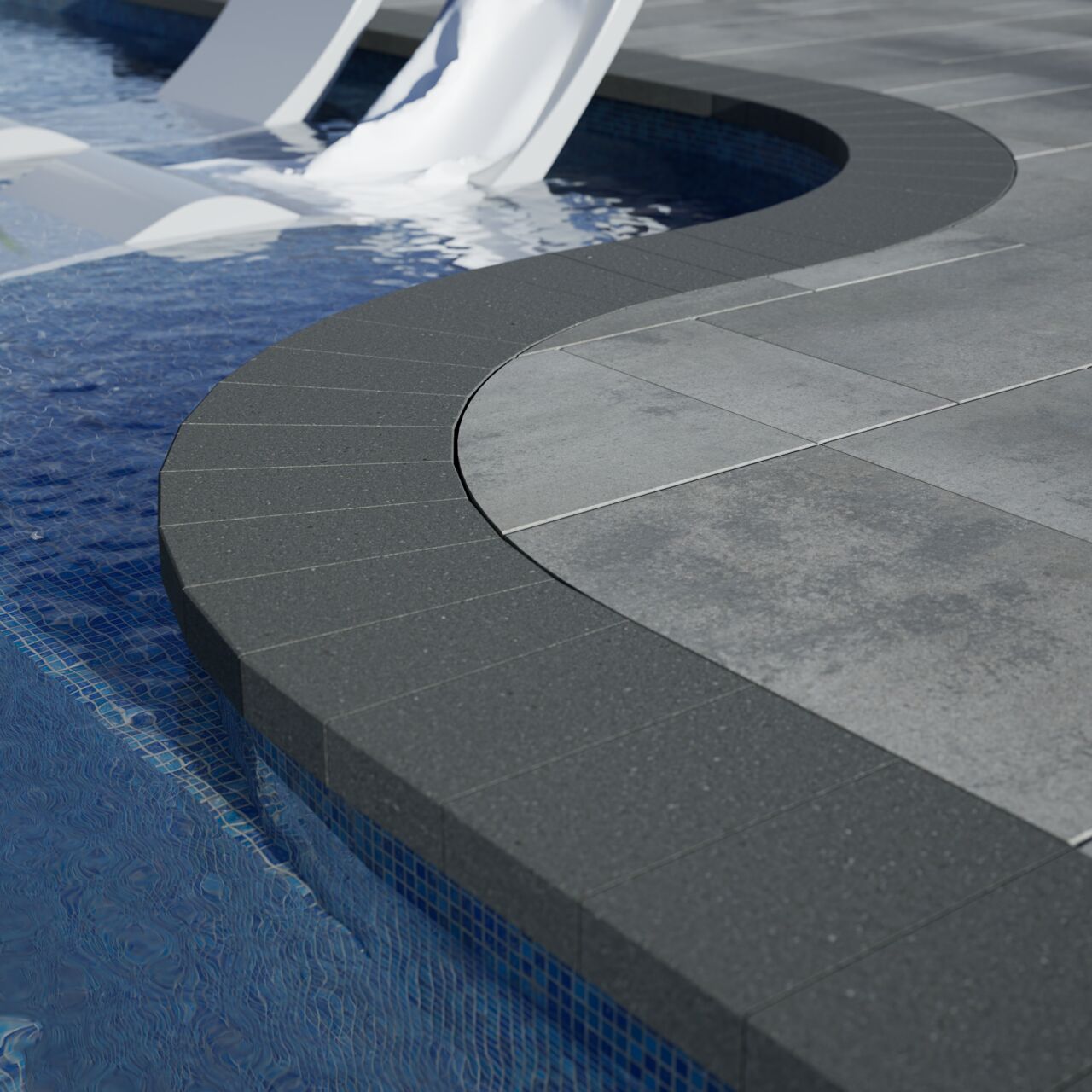 Compact, smooth-faced coping offers contemporary styling and a shape ideal for freeform and curved layouts where larger units require extensive cutting. Compatible with all Belgard modular pavers, so curves blend with straight runs for a consistent finished edge.